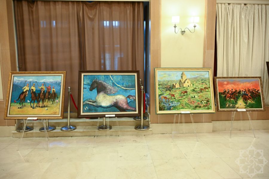 Сначала гости ознакомились с выставкой работ студентов Азербайджанской государственной академии художеств, подготовленных на тему «Лошадиная сила».