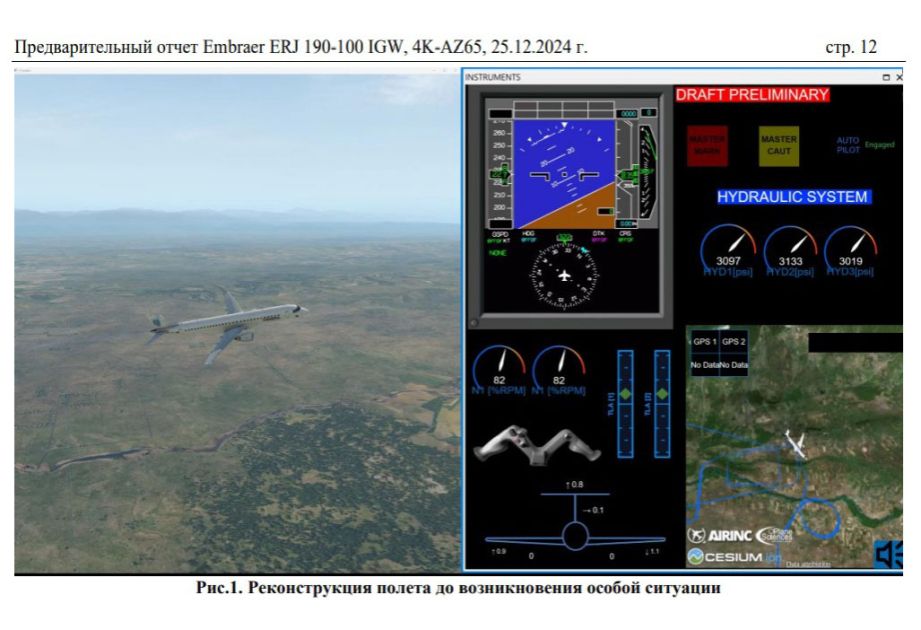 1. 25 декабря 2024 года пассажирский самолет типа Embraer 190-100 IGW, принадлежащий ЗАО «Азербайджанские авиалинии» (AZAL), зарегистрированный в государственном реестре под номером 4K-AZ65 и выполнявший регулярный рейс J2-8243 по маршруту Баку-Грозный, на момент вылета и на всей протяженности полета до Грозного находился в полностью летном и технически исправном состоянии. Данные о летной годности воздушного судна, включая его систему управления, подтверждаются записями бортового самописца параметров полета (FDR).
