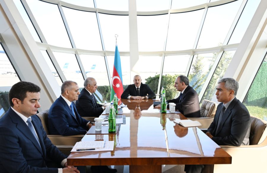 Сразу после посадки самолета Президент Ильхам Алиев провел совещание в Международном аэропорту Гейдар Алиев в связи с произошедшим.
