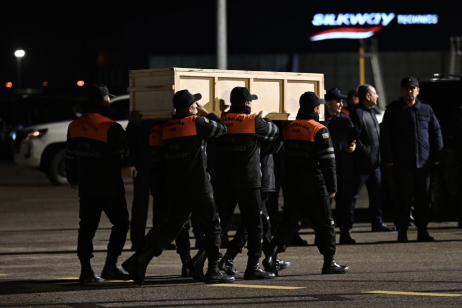 29 декабря в Международном аэропорту Гейдар Алиев состоялась церемония прощания с членами экипажа, погибшими в результате крушения пассажирского самолета типа Embraer 190, выполнявшего рейс Баку-Грозный. В церемонии прощания приняли участие Президент Ильхам Алиев и первая леди Мехрибан Алиева, которые выразили соболезнования членам их семей и близким. После церемонии прощания все трое членов экипажа - командир воздушного судна Игорь Кшнякин, пилот Александр Кальянинов и стюардесса Окюма Алиева - были похоронены на II Аллее почетного захоронения. В церемонии погребения приняли участие официальные лица государства и правительства, представители общественности.