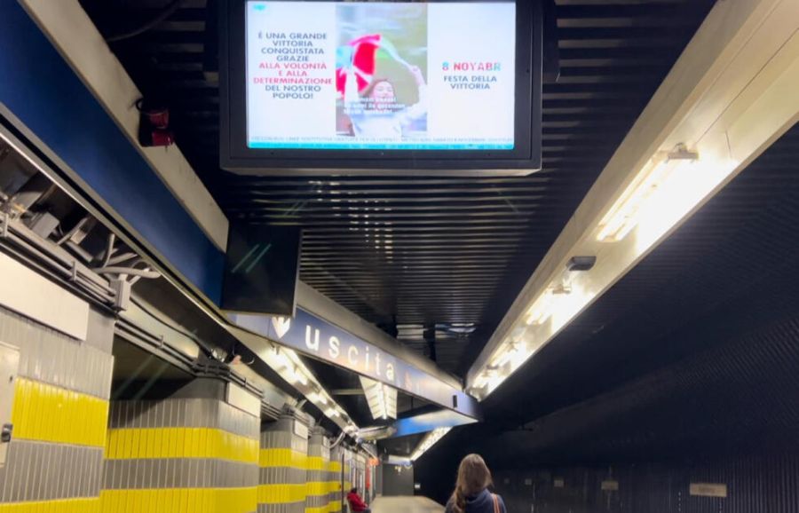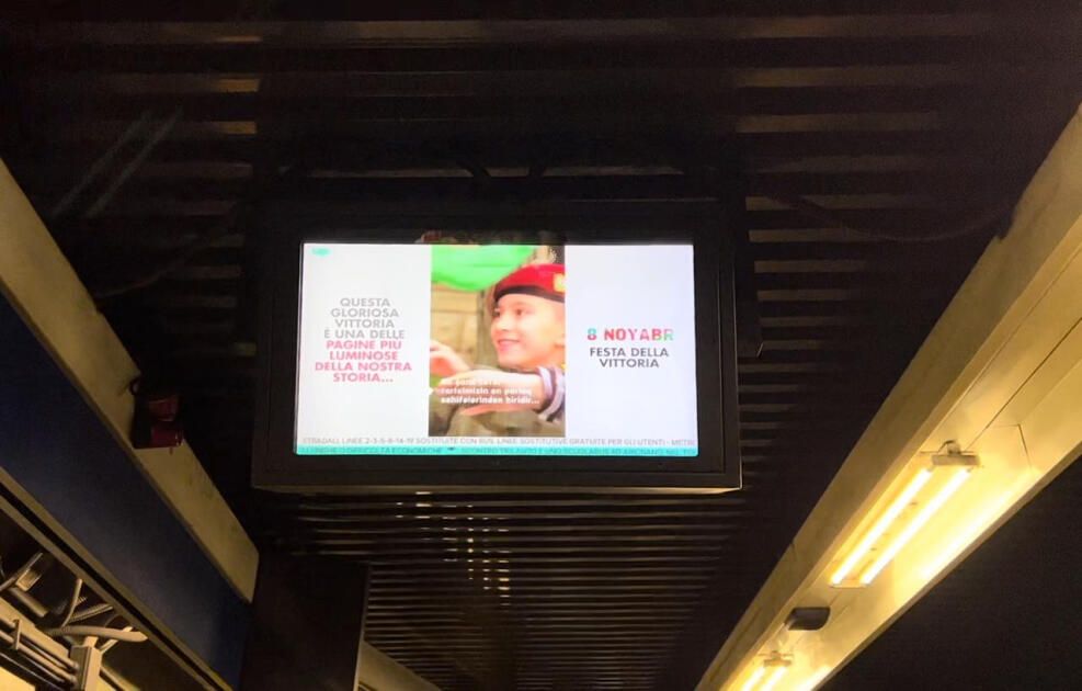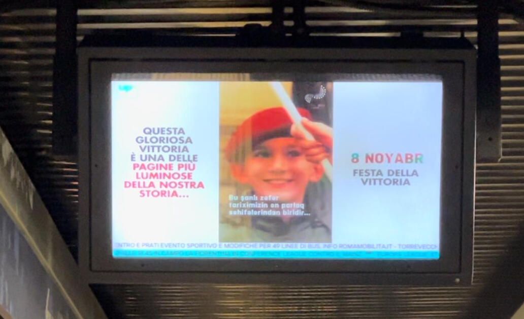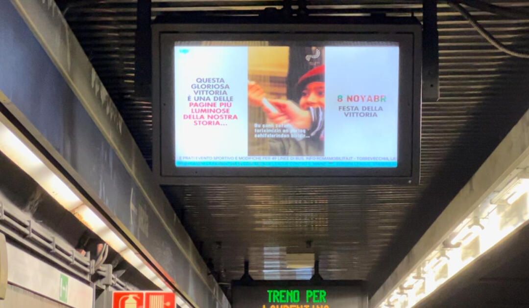 На мониторах станций метро, автобусных остановок итальянской столицы в честь 5-й годовщины 8 Ноября - Дня Победы показали видеоролик.
