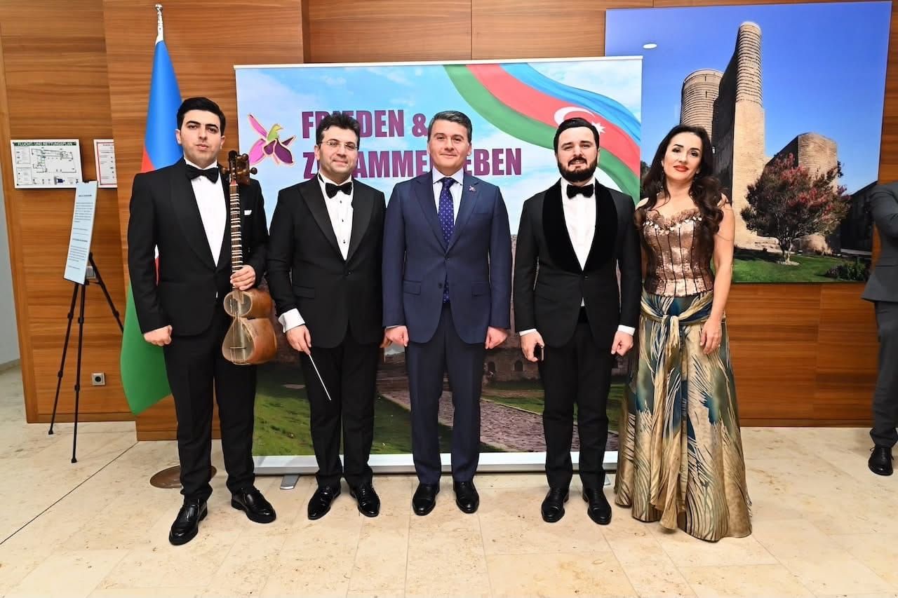 Azərbaycanın Almaniyadakı səfirliyi Vətən müharibəsində şanlı Zəfərin 5-ci ildönümü və dahi bəstəkar Üzeyir Hacıbəylinin anadan olmasının 140 illik yubileyi münasibətilə Berlindəki Azərbaycan Mədəniyyət Mərkəzində "Sülh və birgəyaşayış" adlı təntənəli konsert təşkil edib. Gecədə 400-dək qonaq, o cümlədən Almaniyanın dövlət qurumlarının təmsilçiləri, xarici ölkələrin səfirləri, hərbi attaşeləri, media nümayəndələri, elm və mədəniyyət xadimləri, eləcə də Almaniyada yaşayan Azərbaycan, türk və digər icmaların üzvləri iştirak edib.