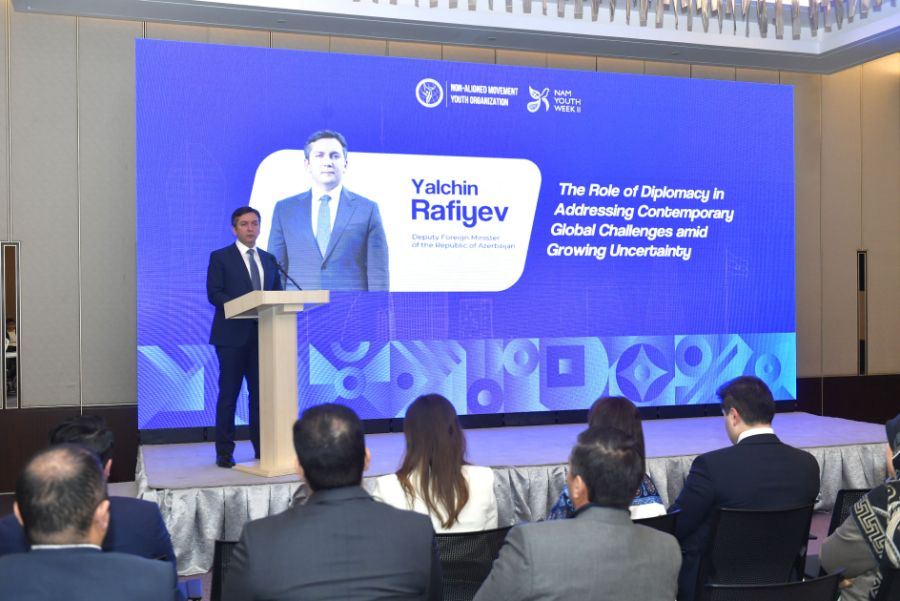 Программа продолжилась основным докладом заместителя министра иностранных дел Азербайджанской Республики Ялчина Рафиева на тему «Роль дипломатии в решении современных глобальных вызовов в условиях растущей неопределенности».