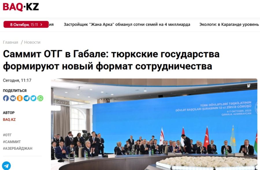 News portals Altyn-Orda.kz and Kazislam.kz emphasized the significance of the Gabala Summit as an important milestone for Turkic countries. In addition, Turantimes.kz and Baq.kz also featured reports on the event.
