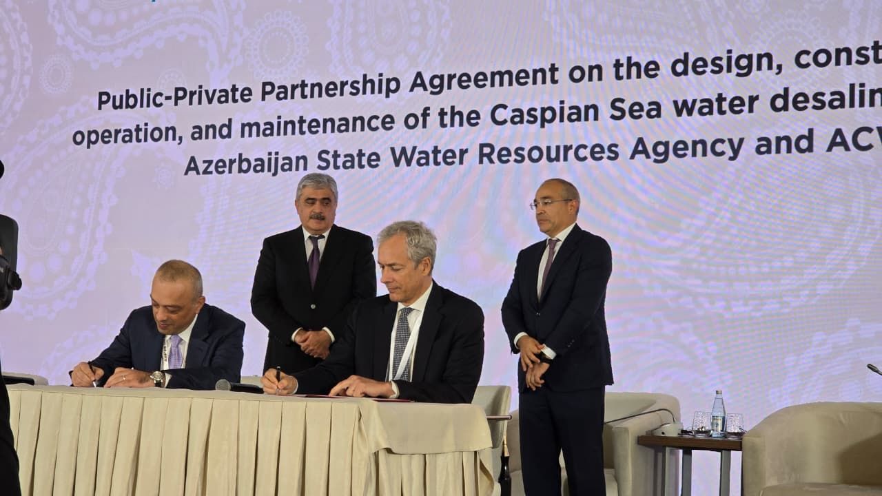 Документы были подписаны министром экономики Микаилом Джаббаровым, заместителем премьер-министра Самиром Шарифовым, министром финансов Сахилем Бабаевым, председателем Государственного агентства водных ресурсов Зауром Микаиловым, рядом других официальных лиц, а также генеральным директором ACWA Power Марко Арчелли.