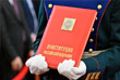 Путин вновь произнес эти слова, положив правую руку на специально изготовленный экземпляр официального текста Конституции РФ, который наряду со штандартом и знаком президента относится к символам президентской власти в России.