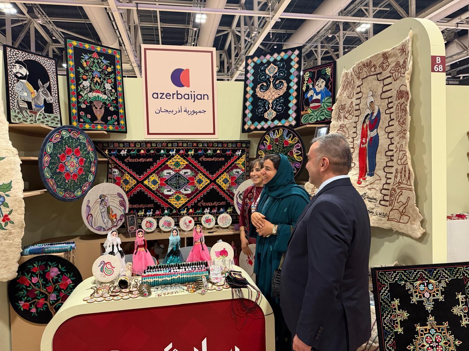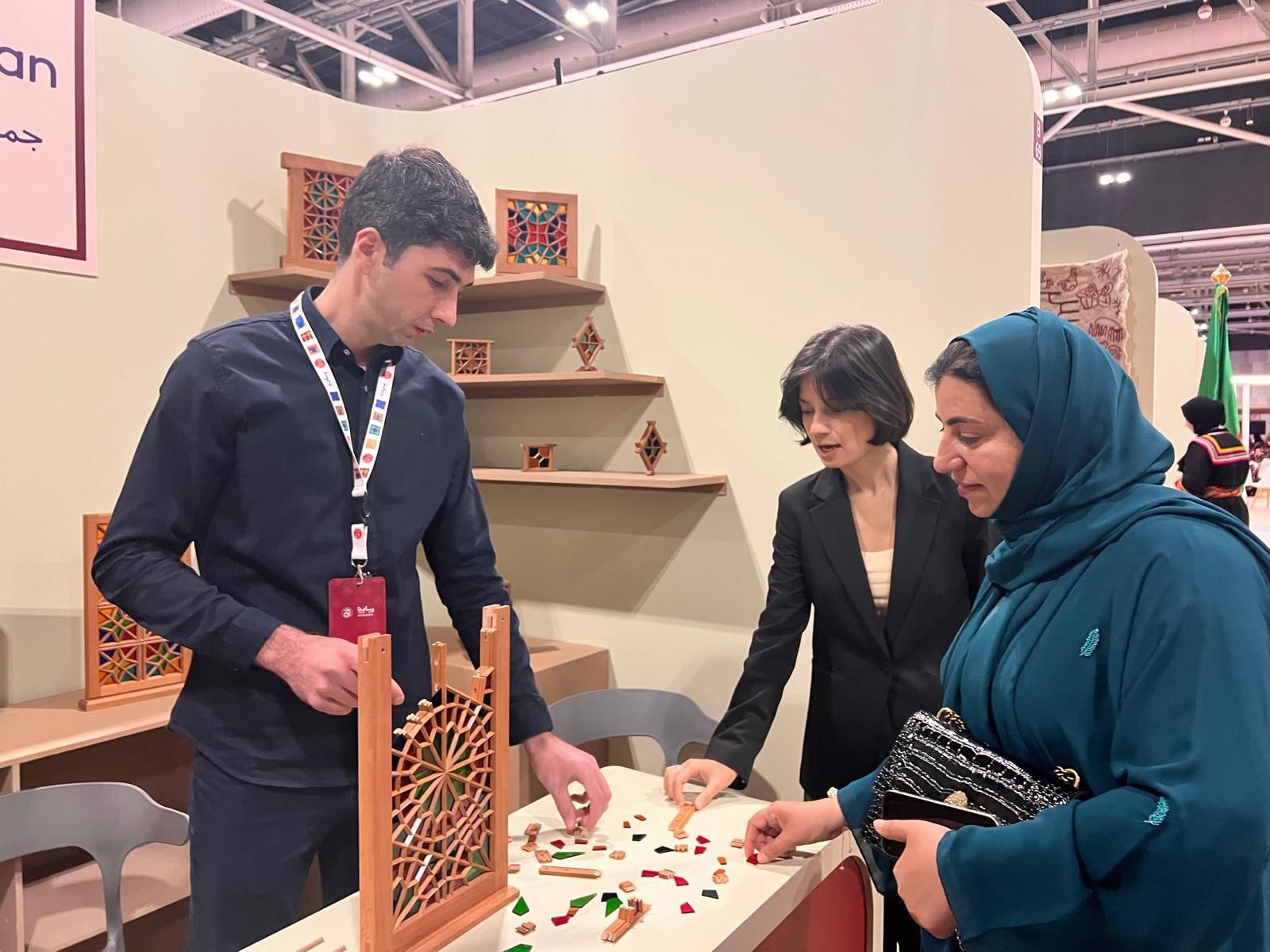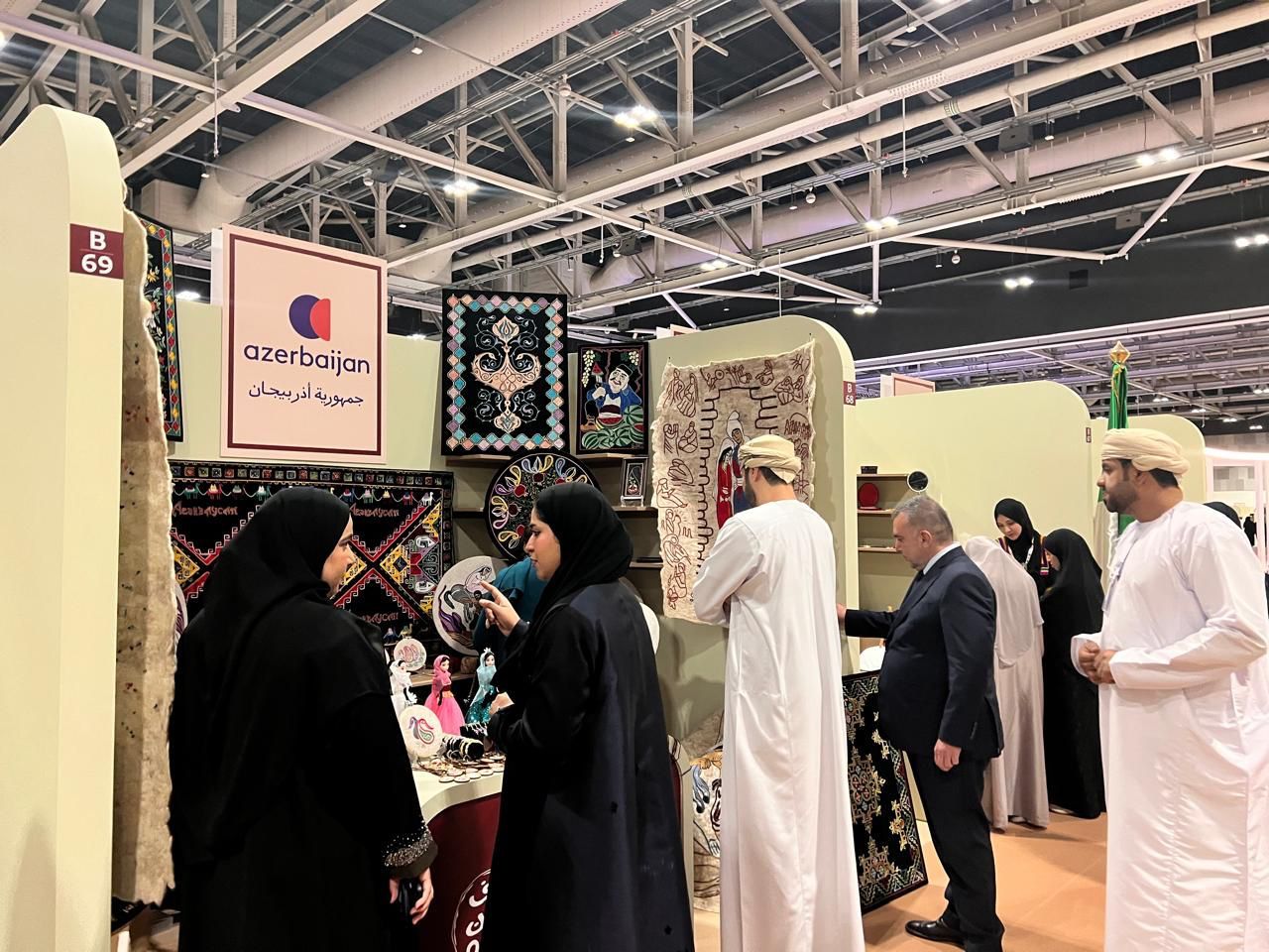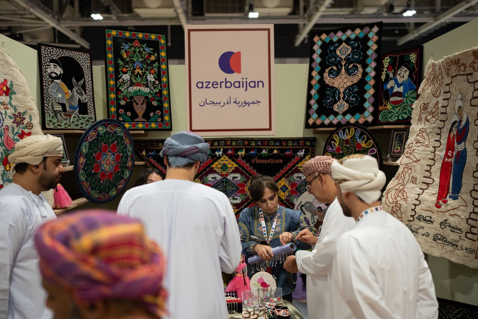 В рамках форума Чрезвычайный и Полномочный Посол Азербайджана в Султанате Оман Рашад Исмаилов, министр культурного наследия и туризма Омана Сейид Ибрагим бин Саид Аль-Бусаиди и председатель Оманского Управления по развитию малых и средних предприятий Халима бинт Рашид Аль-Зариа посетили наш национальный стенд,где ознакомились образцами сетчатого, однорядного и войлочного искусства, представленными лучшими мастерами города Шеки.