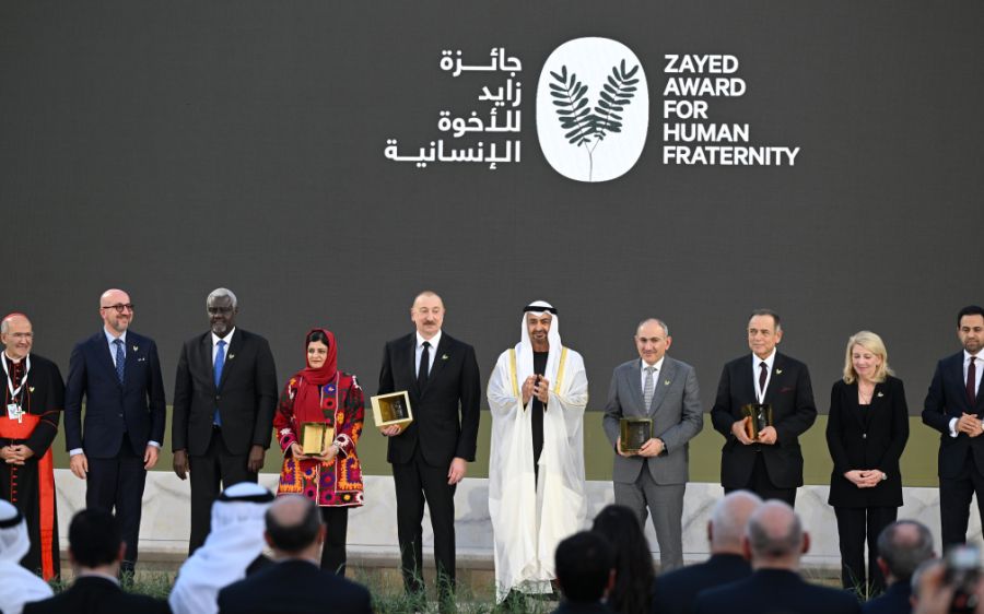 Президент Объединенных Арабских Эмиратов Шейх Мухаммед бен Заид Аль Нахайян вручил Президенту Азербайджана Ильхаму Алиеву и другим лауреатам «Премию Заида за человеческое братство».