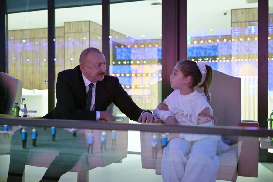 Как сообщает АЗЕРТАДЖ, до начала мероприятия Президент Азербайджанской Республики Ильхам Алиев и первая леди Мехрибан Алиева встретились с детьми, потерявшими родителей, членов семьи и близких родственников, а также получивших ранения в результате ракетных ударов по Гяндже во время Отечественной войны.