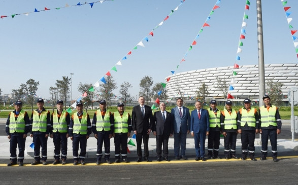 Ильхам Алиев за рулем автомобиля на новой дороге в Баку