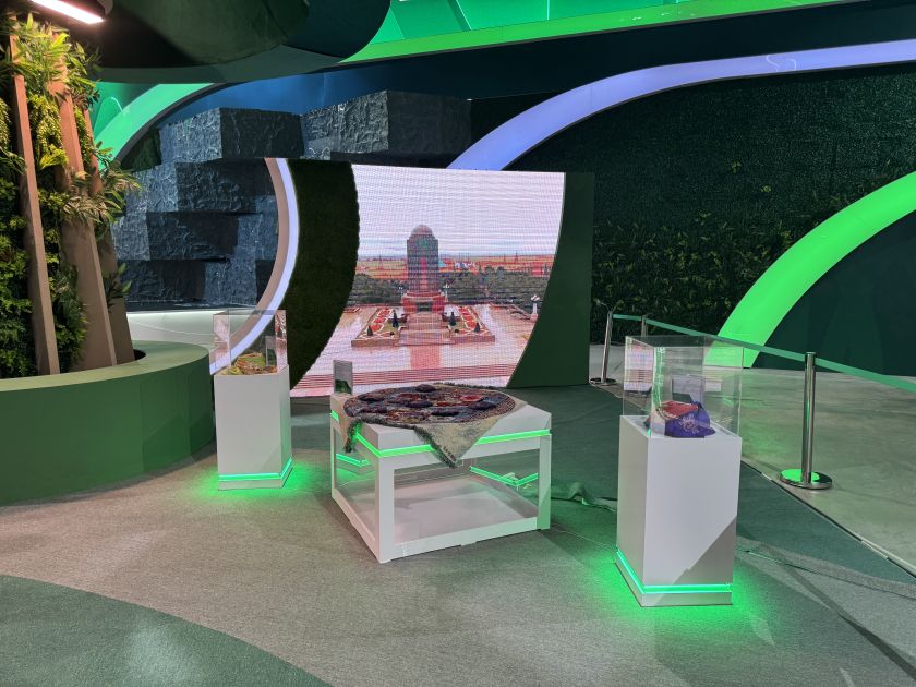 В павильоне представлены издания «Красной книги» Азербайджана, а также мультимедийные материалы, посвященные экологическим проектам и инициативам по озеленению. На экранах демонстрируются визуальные материалы о соответствующих объектах и проектах.