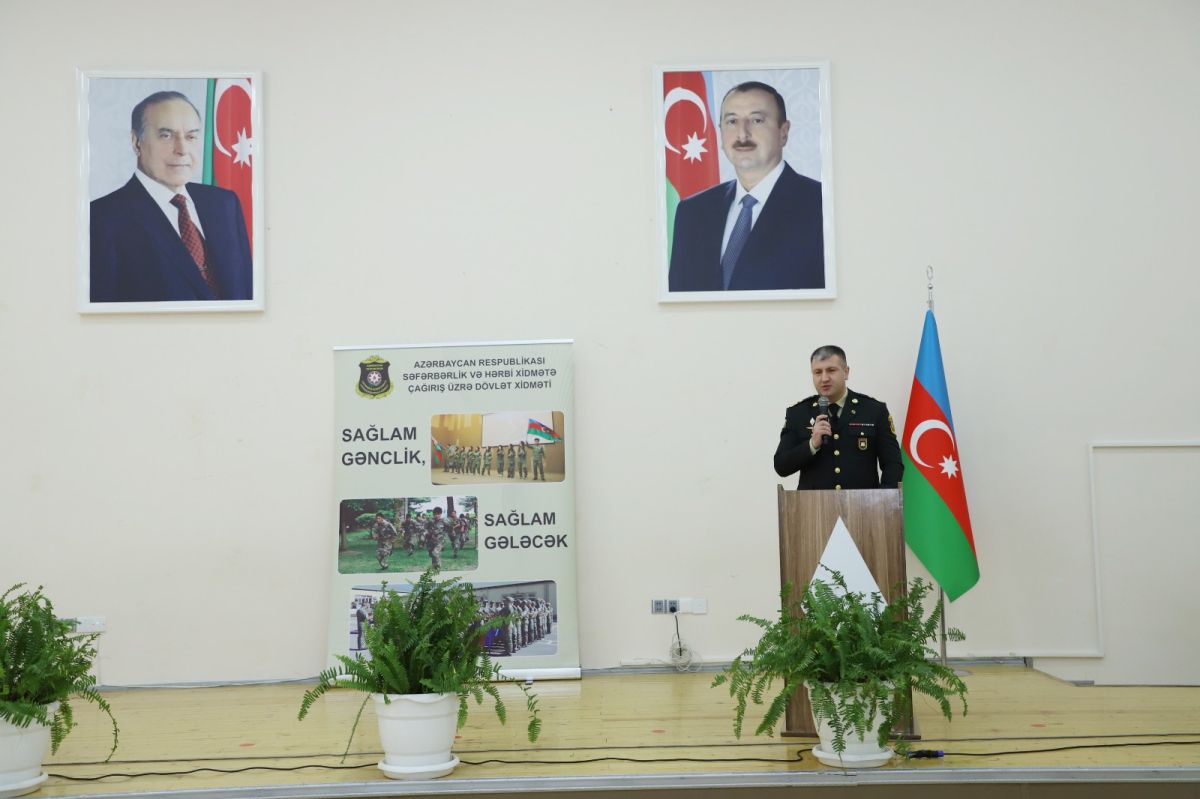 Выступая на мероприятии, начальник Управления допризывной подготовки Госслужбы полковник-лейтенант Физули Исмаилов, начальник отдела по связям с общественностью и международным отношениям Госслужбы Парвиз Садраддинов, начальник Кяпазского районного отделения Госслужбы полковник-лейтенант Илькин Алиев подробно рассказали молодежи о патриотизме, преимуществах службы в армии страны-победительницы, здоровом образе жизни, образовании, законодательстве и других важных вопросах.