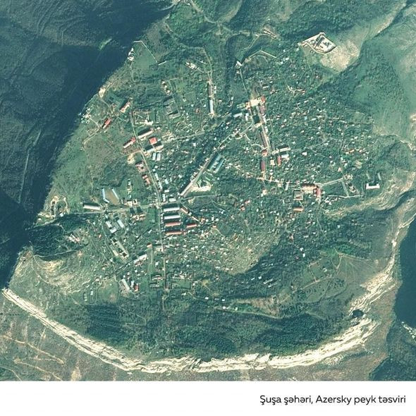 ОАО "Азеркосмос" опубликовало снимок освобожденного от армянской оккупации города Шуши, сделанный спутником Azersky.