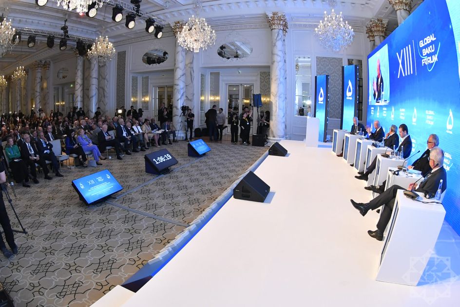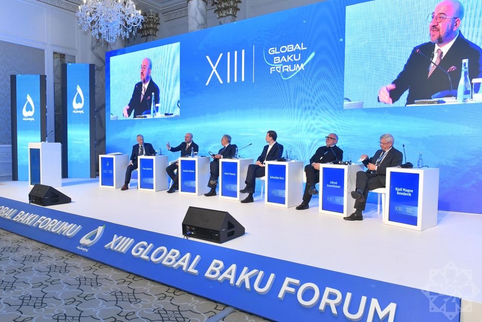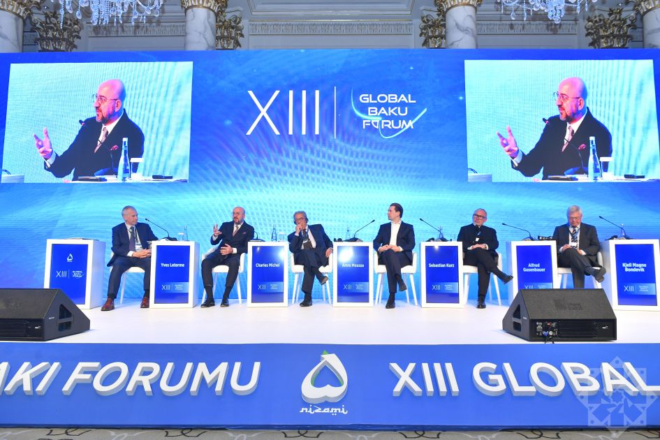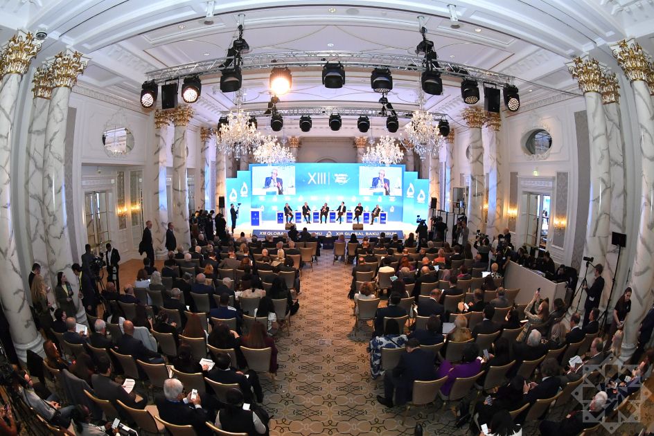 Первая панельная сессия в рамках XIII Глобального Бакинского форума на тему «Преодоление разногласий в мире в переходный период» была посвящена теме «Глобальная безопасность и баланс сил: уважение международного права – новые вопросы, новые вызовы».