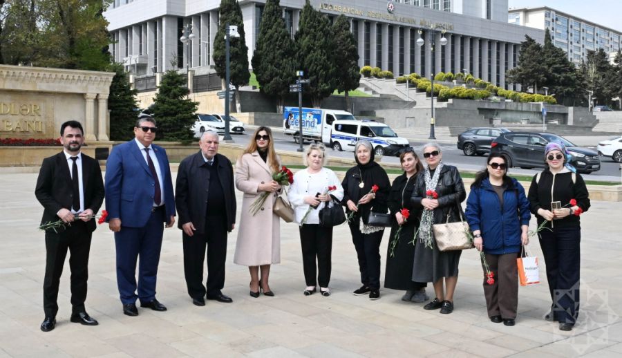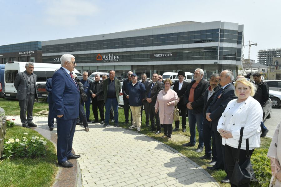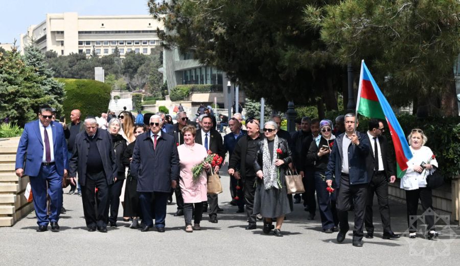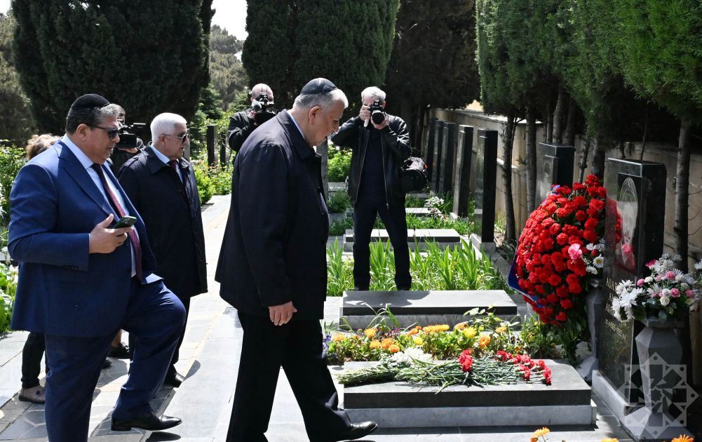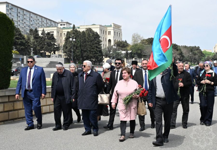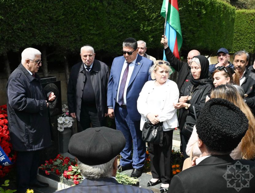 Члены Общественного объединения ветеранов-танкистов, представители общины горских евреев и Государственного комитета по работе с диаспорой, а также другие участники сначала посетили могилу Национального героя Альберта Агарунова на Аллее шехидов.