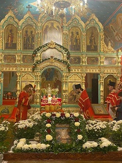 Пасхальная служба в старейшем верхнем храме Архангела Михаила, открытом после реставрации накануне Пасхи