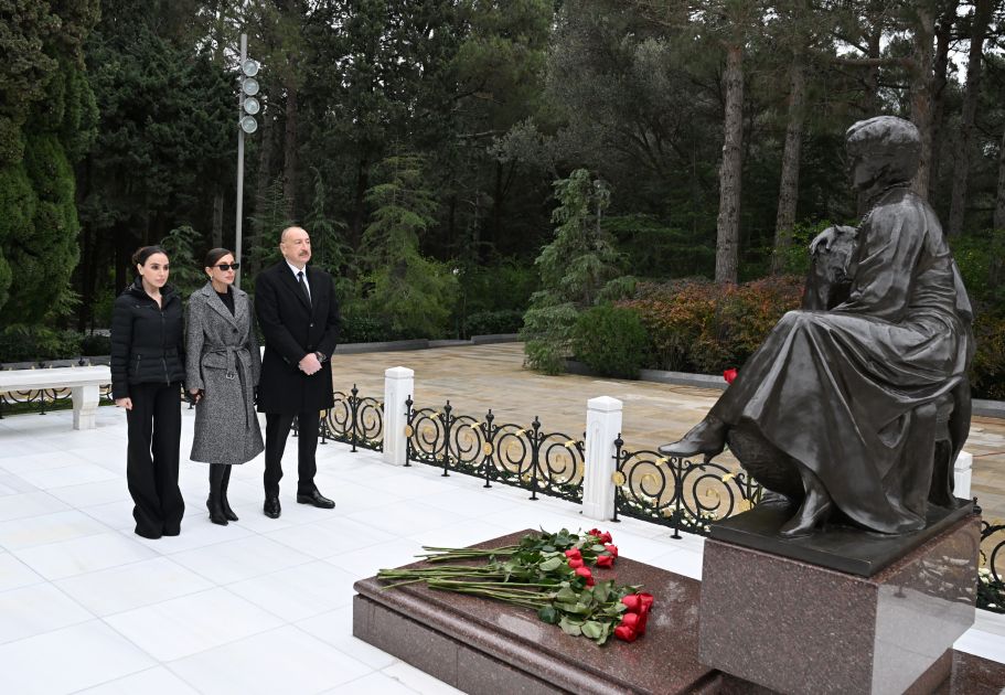 Глава государства Ильхам Алиев, первая леди Мехрибан Алиева и их дочь Лейла Алиева также почтили память спутницы жизни Великого лидера, выдающегося ученого-офтальмолога, академика Зарифы ханым Алиевой, возложили цветы к ее могиле.