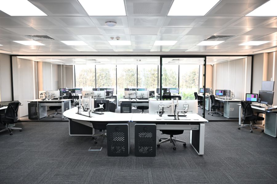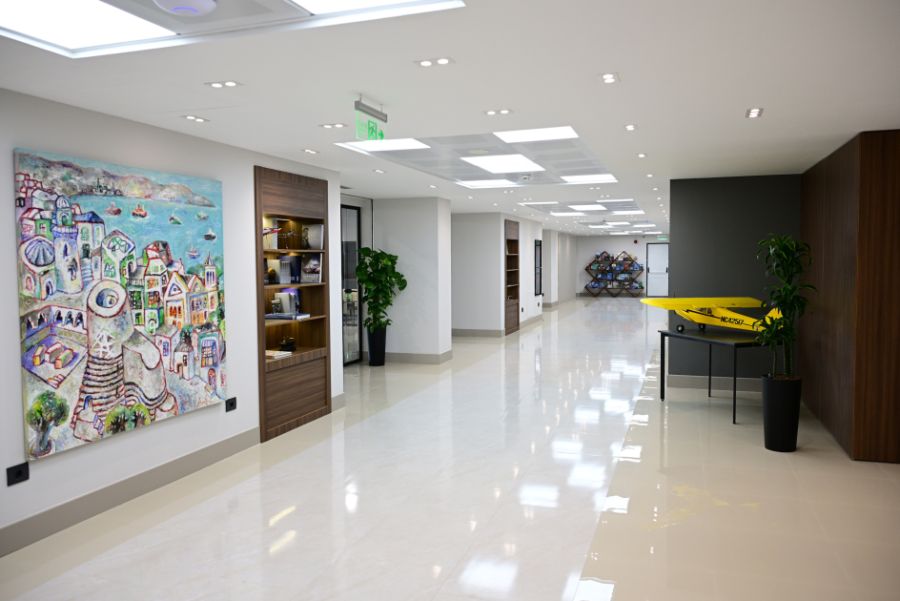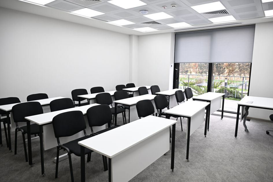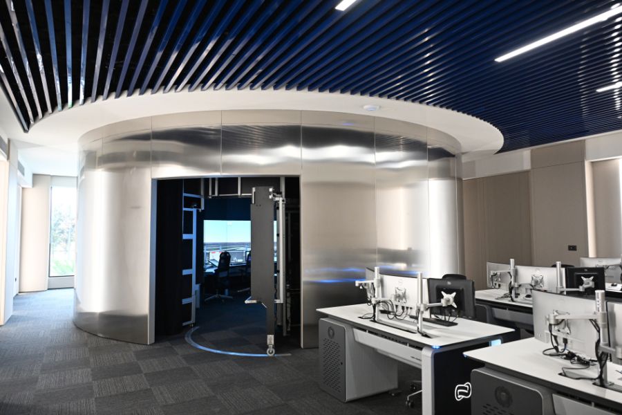 Здесь установлен симулятор вышки управления (TWR) с панорамным обзором Международного аэропорта Гейдар Алиев на 360 градусов, а также комплекс радарных симуляторов для управления воздушным пространством. Эти системы позволяют готовить диспетчеров в реальных операционных условиях.