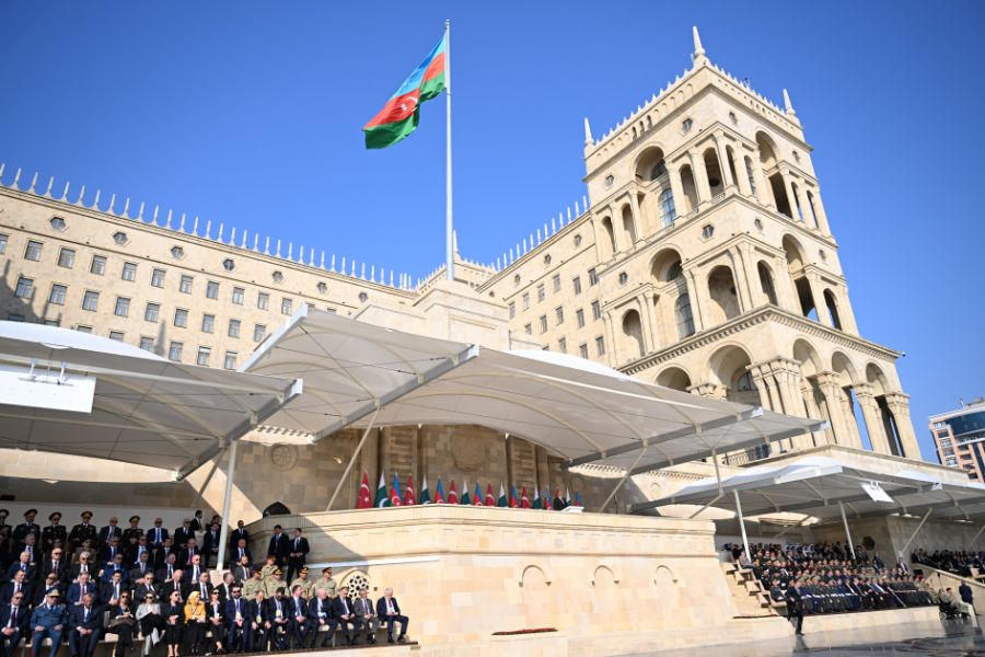 Сердечно поздравляю вас и весь азербайджанский народ с пятой годовщиной нашей славной Победы. Искренне приветствую руководителей, делегации братских стран, принявших мое приглашение.