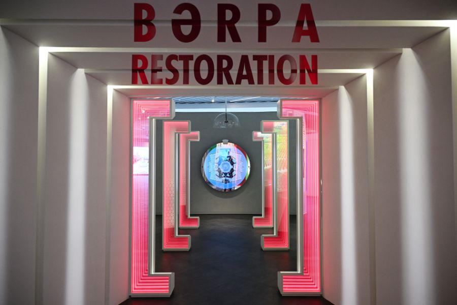 Инсталляция, посвященная судьбе разрушенных во время оккупации зданий в Карабахе – разрушенный дом и пробивающееся из-под его руин дерево – является символом возрождения жизни.