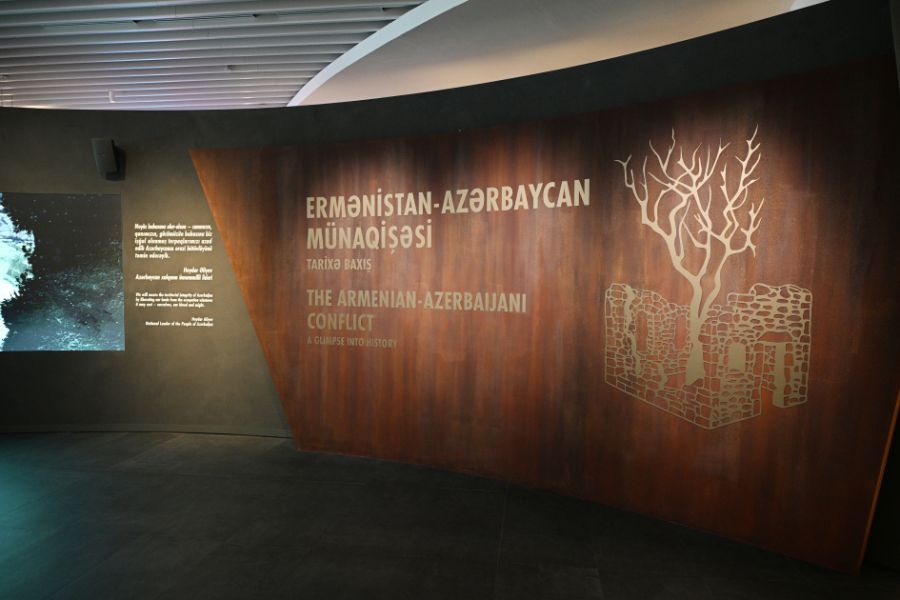 Зал «Армяно-азербайджанский конфликт. Взгляд на историю» отражает болезненные и незабываемые страницы карабахского конфликта. Здесь представлены хронология конфликта, информация об освобождении азербайджанских земель от оккупации в результате последовательной политики Великого лидера и главы нашего государства, о мирном процессе. В зале также предоставлена обширная информация о беженцах и вынужденных переселенцах, жертвах конфликта, а также уничтоженных армянами во время оккупации памятниках, мечетях и ущербе, нанесенном национальному наследию.