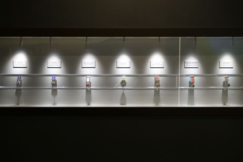 Зал «Путь героев», посвященный храбрости, самоотверженности и несгибаемой воле азербайджанских солдат и офицеров, позволяет посетителям проникнуться духом борьбы за освобождение родных земель. Здесь экспонируются образцы орденов и медалей, которыми награждены герои Отечественной войны. «Путь героев», напоминающий коридор, ведет посетителей в следующий зал, символизирующий единство народа и радость победы.