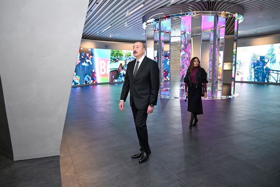 Президент Азербайджанской Республики Ильхам Алиев и первая леди Мехрибан Алиева посетили мемориал Победы в Баку и приняли участие в открытии Музея Победы.