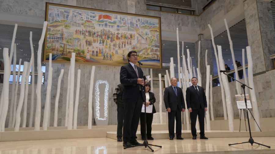 Выступая на церемонии, Эдиль Байсалов подчеркнул, что гобелен уже занял место на парадной лестнице музея и отражает единство и сплоченность многонационального народа Кыргызстана, любовь к родной земле и общее стремление строить достойное будущее. По его словам, работа станет важным символом современной эпохи и будет понятна людям по всей стране.
