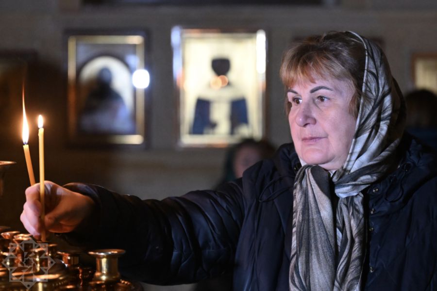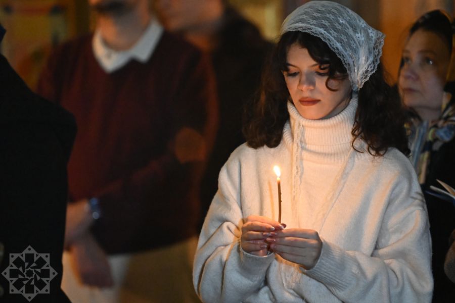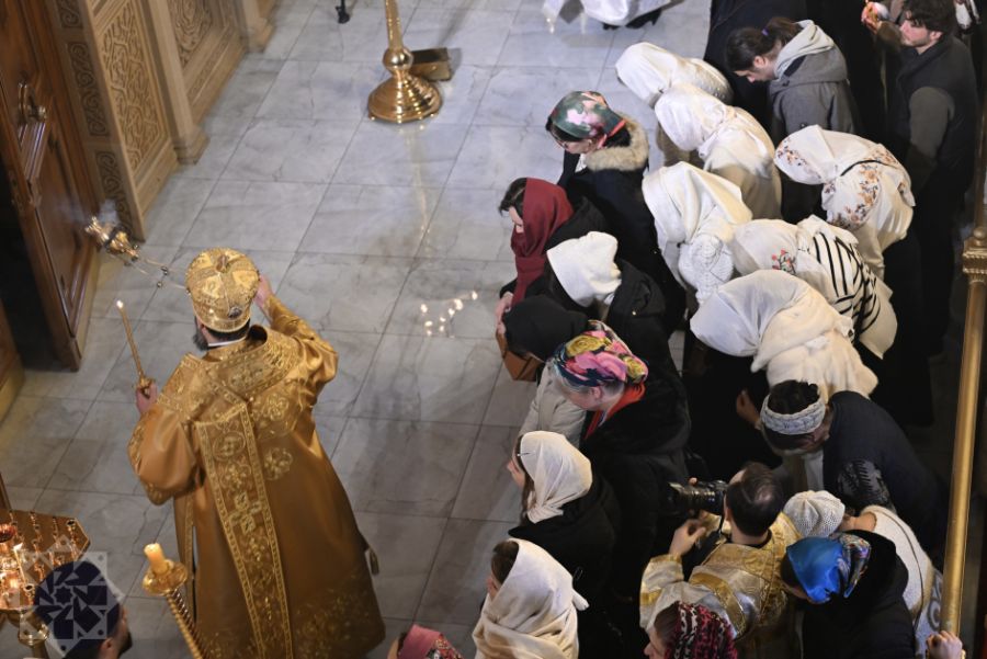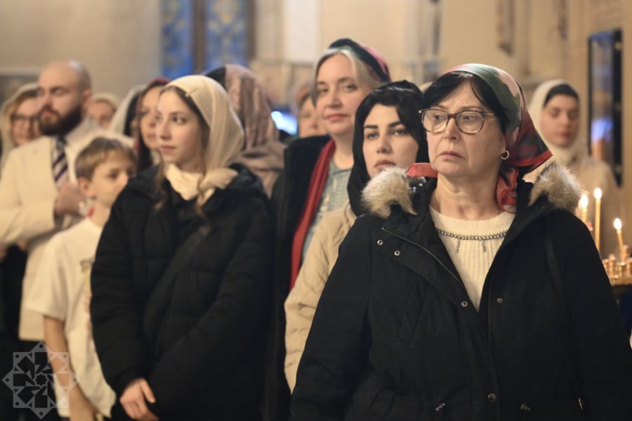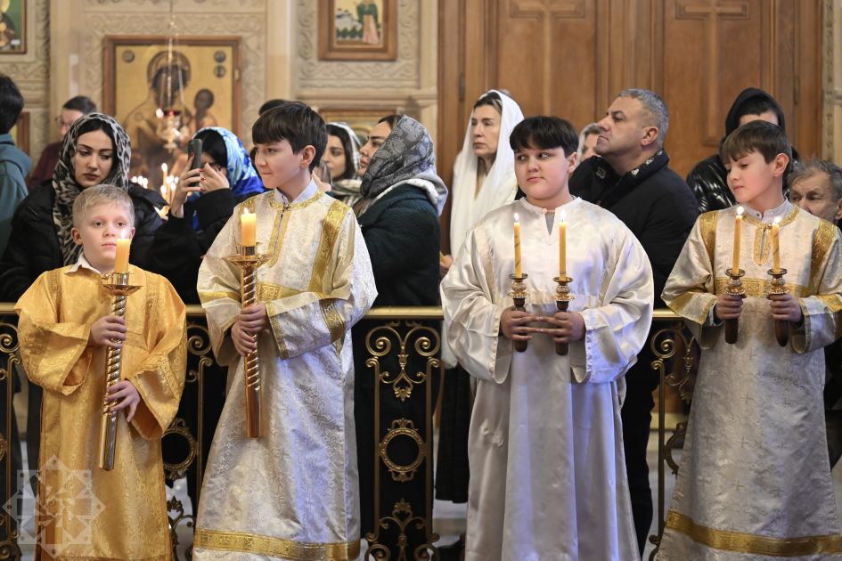 Milad gecəsi yepiskop Aleksi Müqəddəs Mürr-daşıyan Zənənlər Kafedralı və ya “Jen Mironosits” pravoslav kafedral kilsəsində İlahi liturgiyanı icra edib. Arxiyereyə kafedral ruhanilər xidmət göstəriblər.