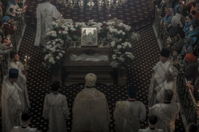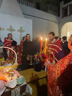 Пасхальная служба в старейшем верхнем храме Архангела Михаила, открытом после реставрации накануне Пасхи