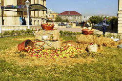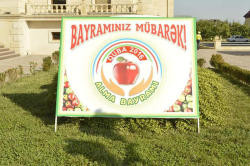 Центральный Парк Гейдара Алиева превратился в импровизированный выставочный павильон, где представлены различные сорта яблок и продукции из них, проходит праздничное шествие, выступают танцевальные и музыкальные коллективы, исполнители народной музыки, свое мастерство показывают канатоходцы и ремесленники, гостям представлены торты и сладости из яблок, варенья и компоты.