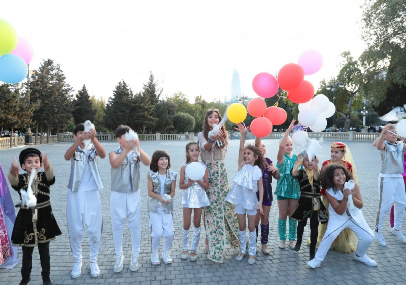 Лейла Алиева вместе с детьми выпустила в воздух голубей, являющихся символом мира.