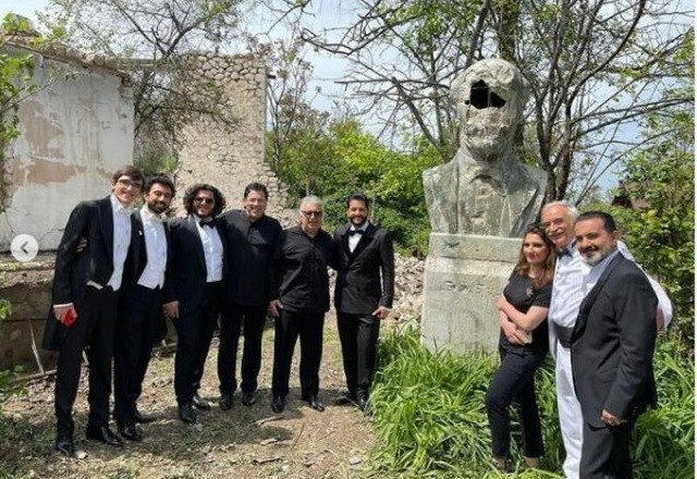 Участники фестиваля "Харыбюльбюль" в полуразрушенном доме-музее Бюльбюля в Шуше - ФОТО