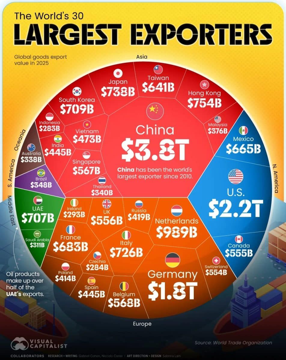 Инфографика: крупнейшие экспортеры мира в 2025 году / © Sabrina Lam, Visual Capitalist