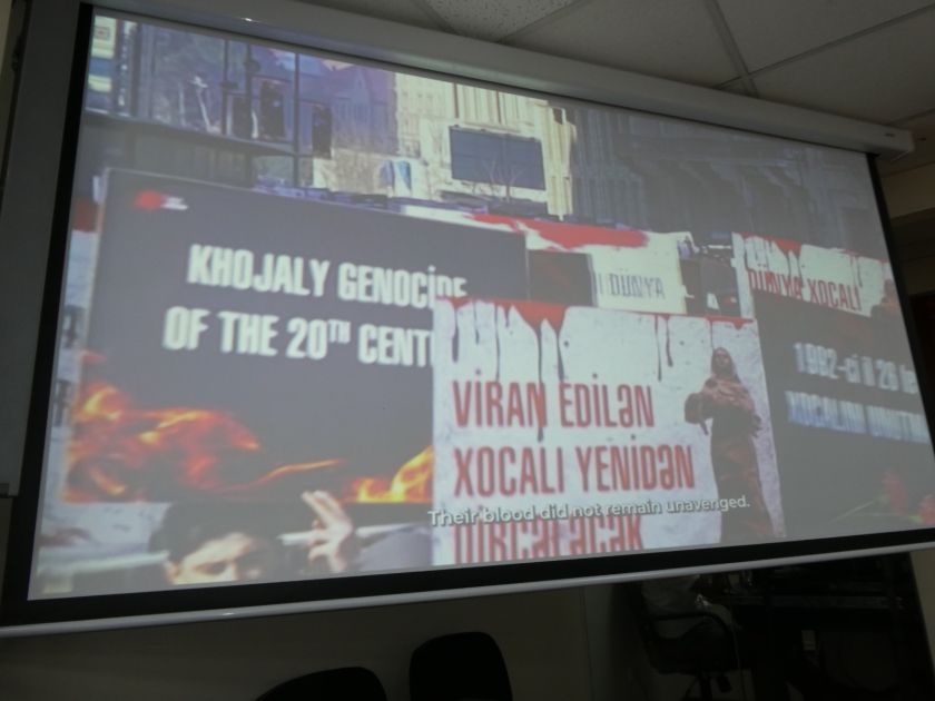 В ходе мероприятия был продемонстрирован документальный фильм о Ходжалинском геноциде, участникам были розданы брошюры и материалы, посвященные истории этой кровавой трагедии.