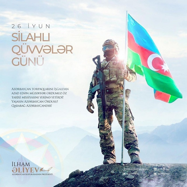 На официальной странице Президента Азербайджана Ильхама Алиева в Instagram размещена публикация по случаю 26 июня - Дня Вооруженных сил.