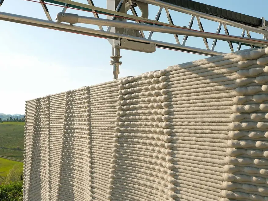 Стены здания были напечатаны четырьмя роботизированными манипуляторами, установленными в вершинах шестиугольной конструкции. В качестве основного материала для печати использовался состав на основе извести. Внутренние полости стен заполнены рисовой шелухой — побочным продуктом сельскохозяйственного производства, выполняющим функцию теплоизоляции. Системы лучистого отопления и электропроводка встраивались непосредственно в процессе печати.