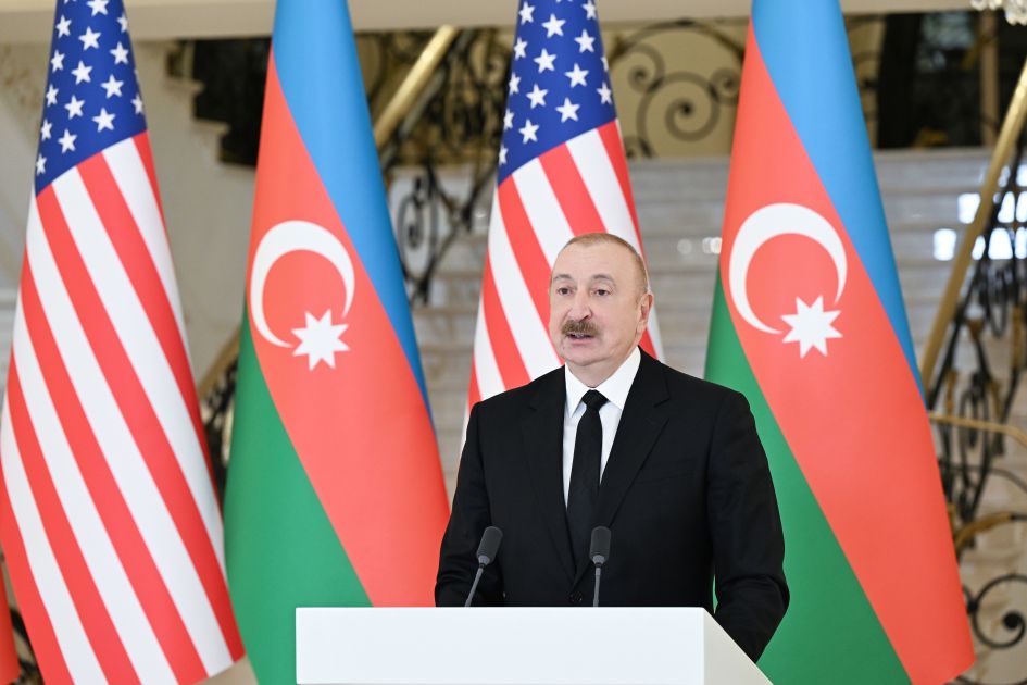Что касается мирного соглашения, я действительно думаю, что Президент Алиев заслуживает огромного признания. Я был в Армении сегодня ранее, и без лидерства Премьер-министра Армении и Президента Азербайджана мы бы не заключили это мирное соглашение. И, действительно, три человека, я думаю, создали исторический мир: Президент этой страны, Премьер-министр Армении и, конечно, Президент Соединенных Штатов. Работая вместе, они создали мир там, где прежде была война, и я думаю, в будущем создадут процветание там, где когда-то были только боевые действия и конфликты. Это удивительное свидетельство лидерства Президента, а также лидерства Президента Алиева. И опять же, это то, чему Президент Соединенных Штатов посвятил нашу внешнюю политику. Зачем нам воевать друг с другом, если мы можем заниматься торговлей, выстраивать партнерские отношения между собой?!
