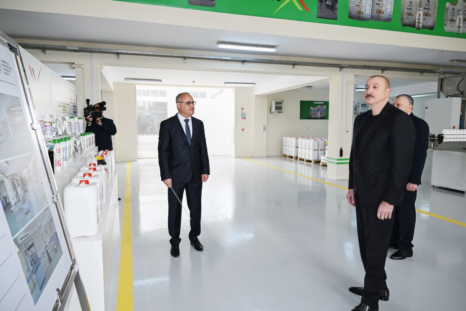 Президент Ильхам Алиев ознакомился с деятельностью предприятия по производству агрохимических средств в Сабирабаде