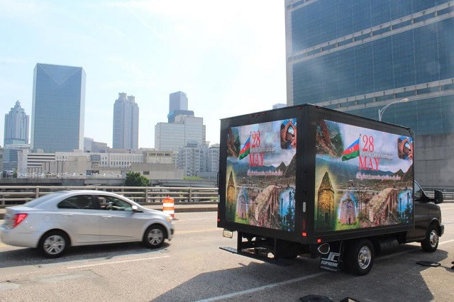Информационные кампании, проводимые при поддержке Государственного комитета по работе с диаспорскими организациями Азербайджана в разных странах мира, помогают диаспорским организациям выступать с эффективными инициативами и откликаться по всем волнующим общество и диаспору темам. Совсем недавно многие наши соотечественники, проживающие за рубежом, организовывали мероприятия, посвященные 28 мая - Дню Республики Азербайджана. В ходе акций, надписи «28 мая - День Республики Азербайджана» и «Первая демократическая республика на Востоке», азербайджанский трехколорный флаг, а также изображения исторических архитектурных и религиозных памятников в освобожденных городах Шуша, Зангелан, Джебраил, Агдам, Худафаринские мосты, прекрасная природа нашей стран, были размещены на светодиодных экранах грузовиков. Подобные акции проходили во многих городах США –Нью-Йорке, Лос-Анджелесе, Атланте, в столице Великобритании, многих европейских городах.