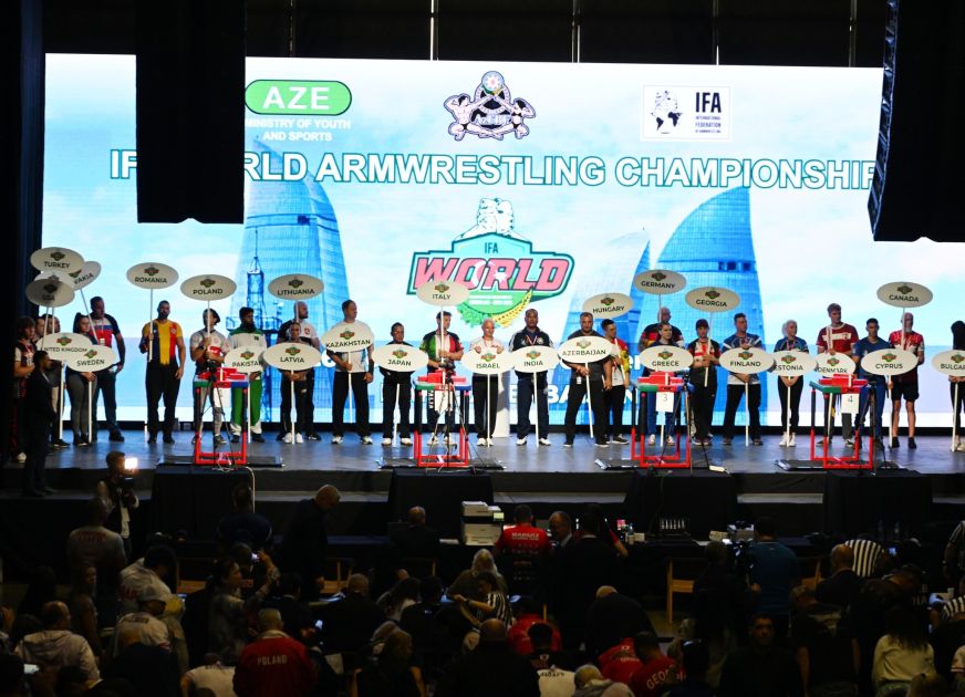 На открытии выступили президент Международной федерации армрестлинга (IFA) Андерс Акскло и министр молодежи и спорта Фарид Гаибов. Затем чемпионат мира был объявлен открытым.