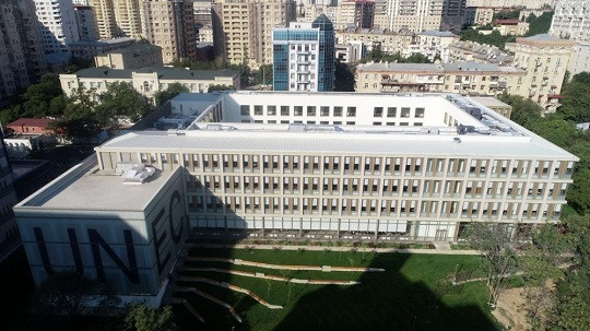 Президент Ильхам Алиев и Первая леди Мехрибан Алиева приняли участие в мероприятии по сдаче в эксплуатацию нового учебного корпуса UNEC