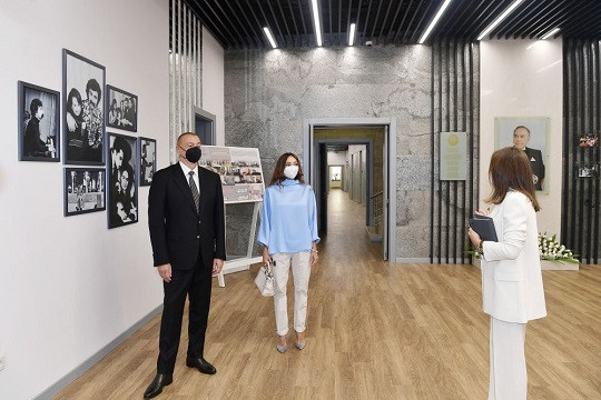 Президент Ильхам Алиев и Первая леди Мехрибан Алиева приняли участие в открытии после капитального ремонта Детской школы искусств в Баку